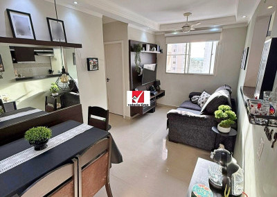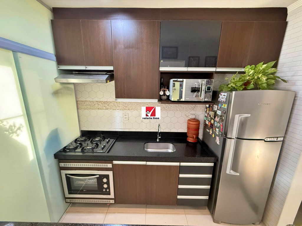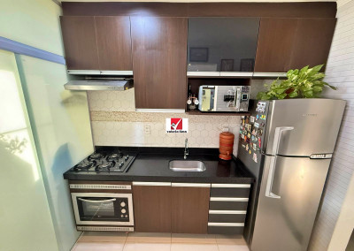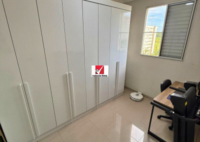 Apartamento de 49m², com 2 quartos, 1 banheiro e 1 vaga de garagem coberta. O imóvel apresenta acabamento impecável, pintura nova e sanca de gesso com iluminação embutida por todo o apartamento. Conta com armários planejados na cozinha e no banheiro, além de armários modulares de alta qualidade em ambos os quartos. A sala integrada possui um charmoso canto alemão, otimizando o espaço de jantar, e todas as janelas já contam com tela mosquiteiro instalada. O condomínio oferece estrutura completa de lazer e conveniência com academia 24h, dois salões de festas, quiosque com churrasqueira, quadra poliesportiva e um mercadinho interno para compras rápidas. A segurança é garantida por portaria e vigilância 24h. Unidade pronta para morar, unindo conforto, praticidade e segurança em um só lugar.